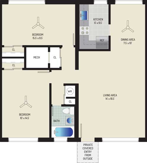 3BR + 1 BA Townhome 3 Beds 1 Bath 970 sqft $1,798 - $1,923 per month Inquire for Availability View Details